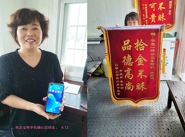 “感謝你,李師傅,要不是你,我的手機可能真的就找不到了......”6月13日,朱女士攜帶一面“拾金不昧 品德高尚”的錦旗,送至市公交公司火車站調度室,見到駕駛員李飛時連忙道謝。