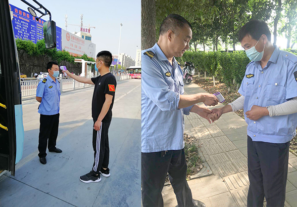 此外,市公交公司對駕駛員的體溫檢測也有嚴格的要求,上車前,車隊長對其進行體溫檢測,體溫正常者才能上車。“我自己也很注意衛(wèi)生,每跑完一趟,都會用酒精擦拭雙手消毒。”9路駕駛員王某講道。除了做好自身防控,市公交公司還在車身醒目位置張貼溫馨提示和疫情防控宣傳標識,發(fā)動乘客共同參與防控。